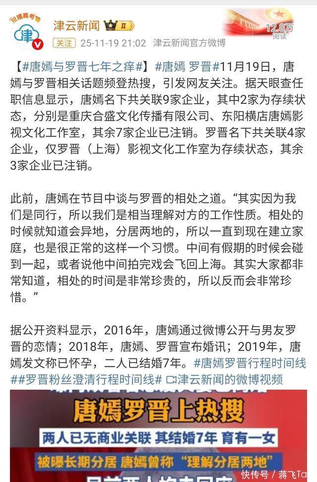 目前,罗晋本人及其家人均未对此事公开发声。 都能理解,毕竟一个正常的家庭,在面对如此重大打击时。 第一反应都是用时间和空间来消化悲伤,安静地送别挚爱的亲人。 除非是想靠着“老爷子去世”博取流量的网红,要不然,正常明星都会低调处理后事,外界的过度关注就是一种负担。 但问题是,罗晋前一天才刚刚上的热搜,是因为和自己老婆唐嫣的事情。 之前,不知道怎么回事,网上铺天盖地都开始传“罗晋唐嫣婚变”