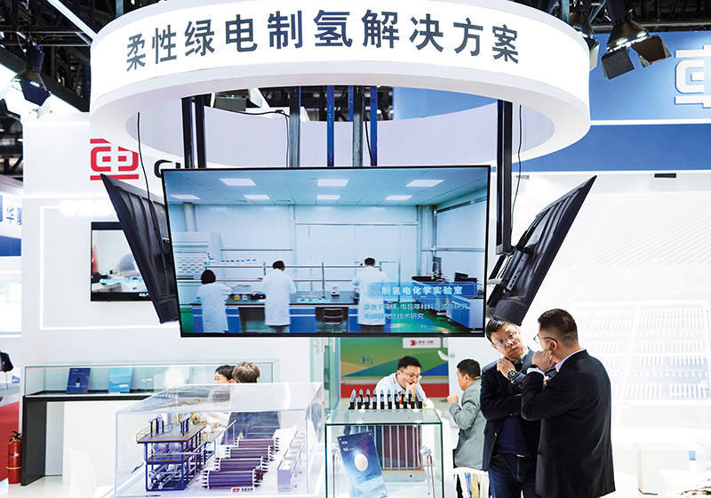 参观者在 2025 中国国际清洁能源博览会上了解展出的氢能源制造方案(2025 年 3 月 26 日摄) 潘旭摄 / 本刊有望从原材料转向清洁燃料和能源