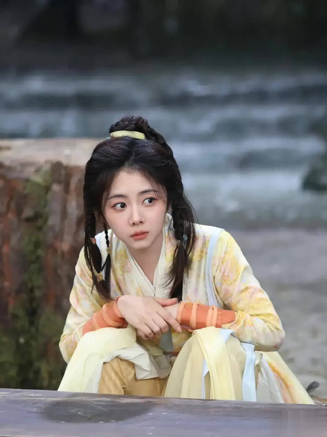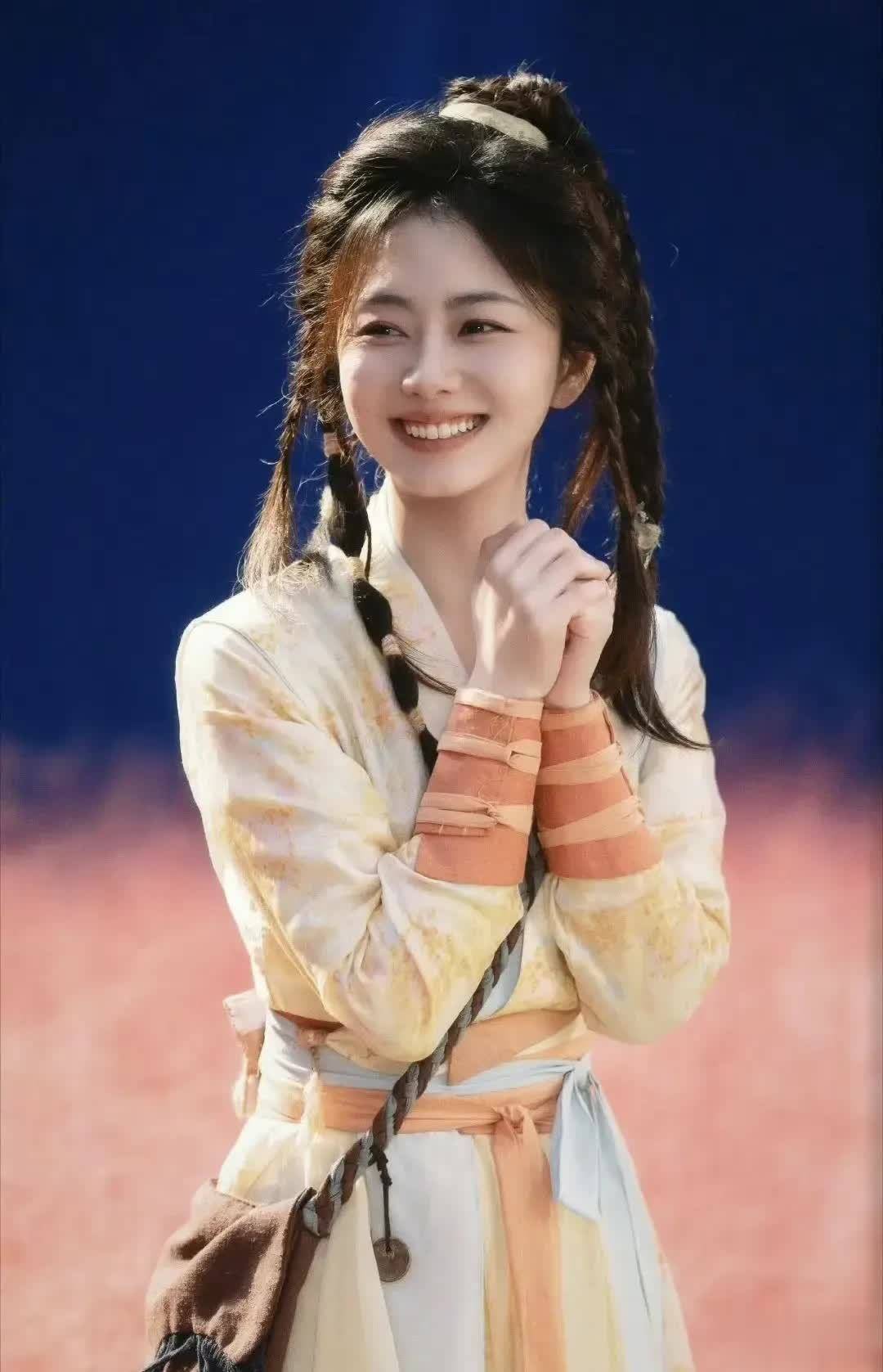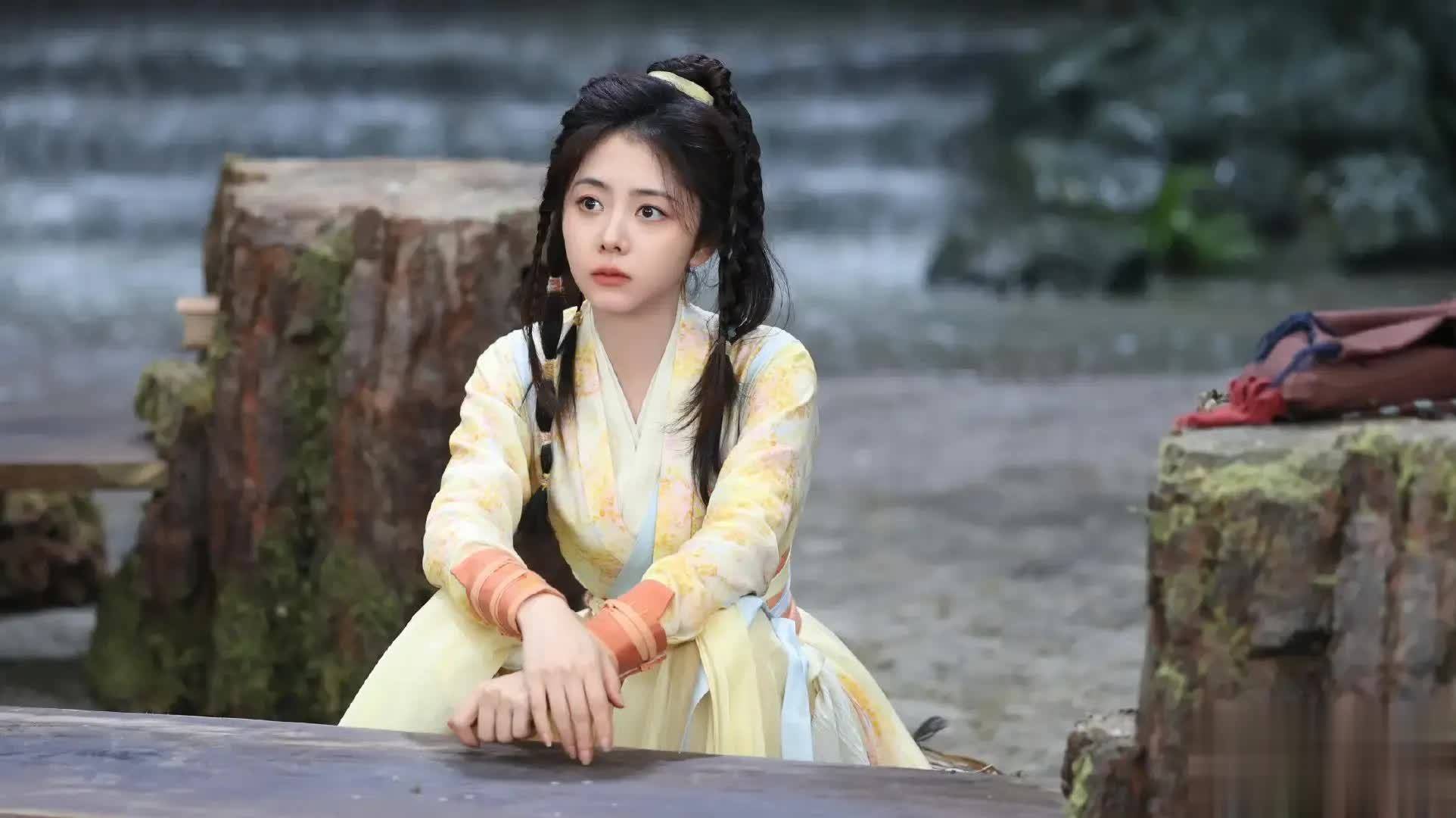 谭松韵在新剧《逍遥》中的造型一经曝光,便迅速引发网友的热议。她饰演的角色“肖瑶”以一身明黄服饰、俏皮双环髻或灵动麻花辫亮相,发间点缀红绳与细碎珠饰,整体造型清新灵动,充满古早武侠韵味。这一形象高度契合观众心中金庸笔下黄蓉的经典模样,尤其是服饰色彩与发型设计,与朱茵版黄蓉有异曲同工之妙,令人瞬间梦回《射雕英雄传》的江湖岁月。